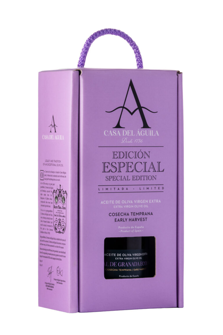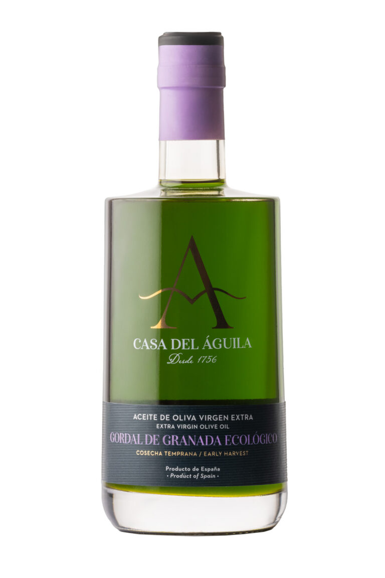 Aceite de Oliva Virgen Extra de calidad Premium, muy selecto y exclusivo por su variedad poco conocida. La especie Gordal de Granada es autóctona de la zona y Casa del Águila la ha recuperado con un total de 338 olivos.